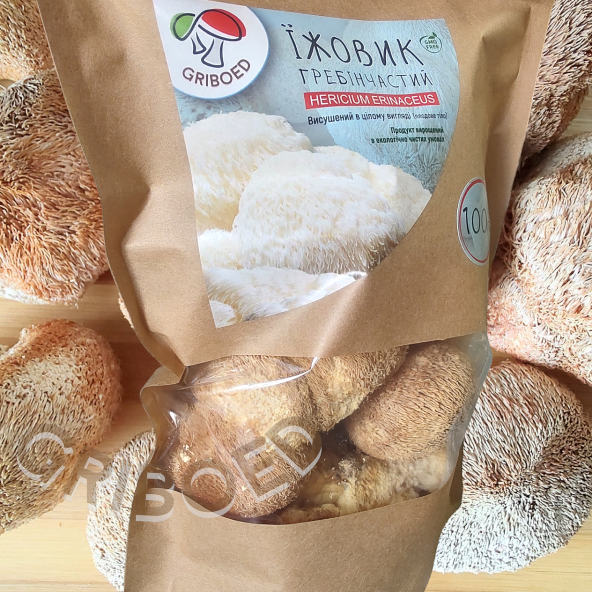 5) Їжовик гребінчастий сухий перемелений (70% міцелій + 30% плодові тіла), фасування: