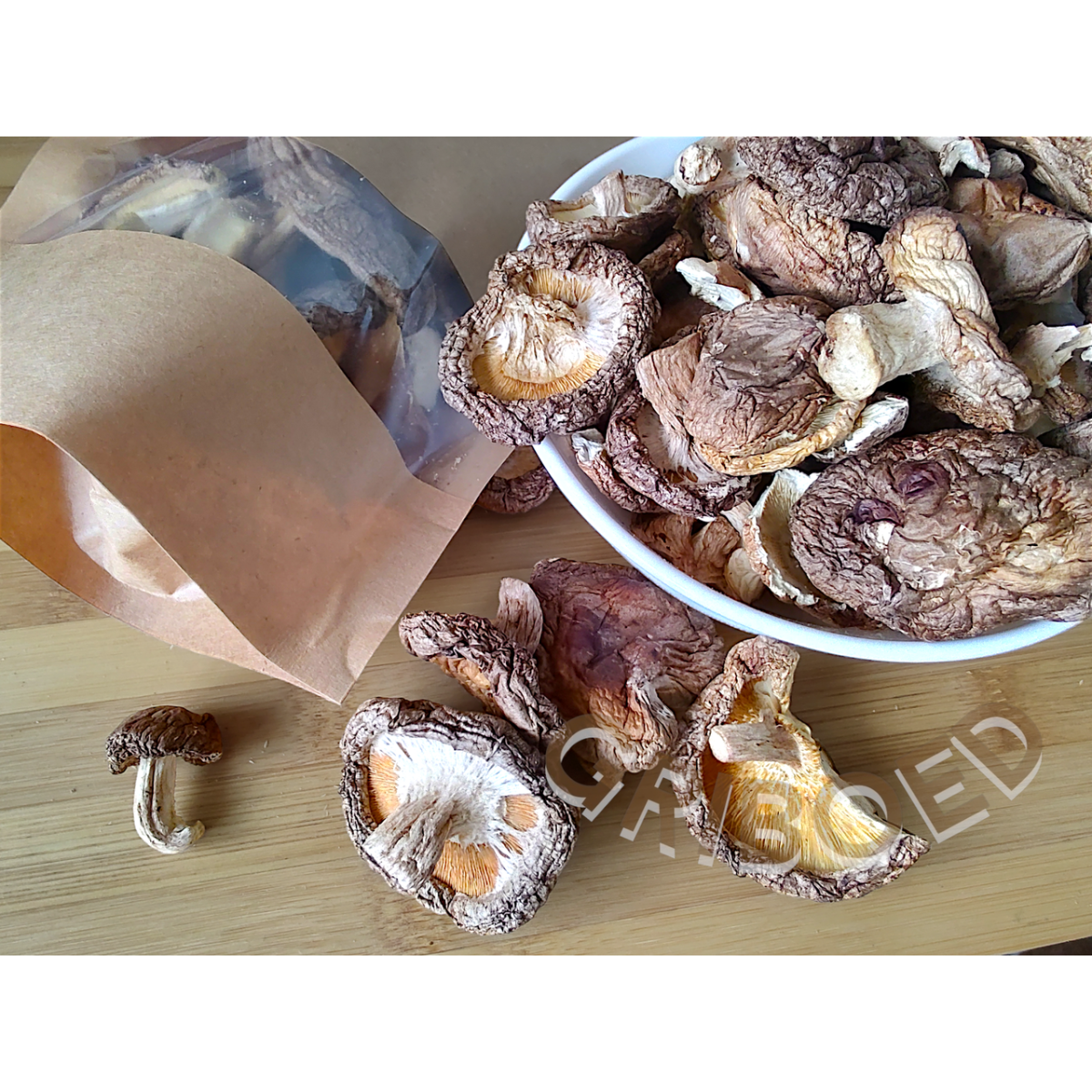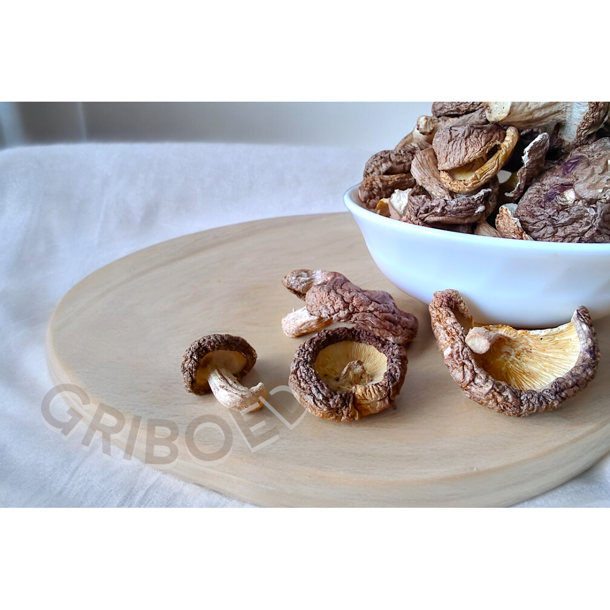 Пропонуємо гриб ШИЇТАКЕ (плодові тіла) в цілому вигляді - 100 грам. Висушений за температури до 40 градусів. Гриб вирощений в екологічно чистих умовах.