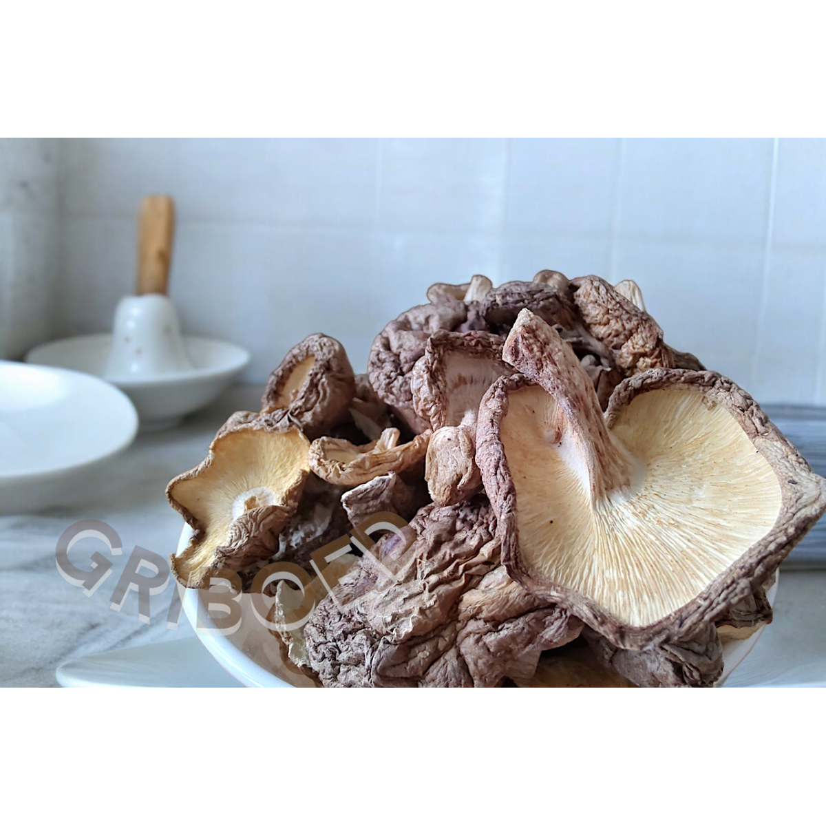 Пропонуємо гриб ШИЇТАКЕ (плодові тіла) в цілому вигляді - 200 грам. Висушений за температури до 40 градусів. Гриб вирощений в екологічно чистих умовах.