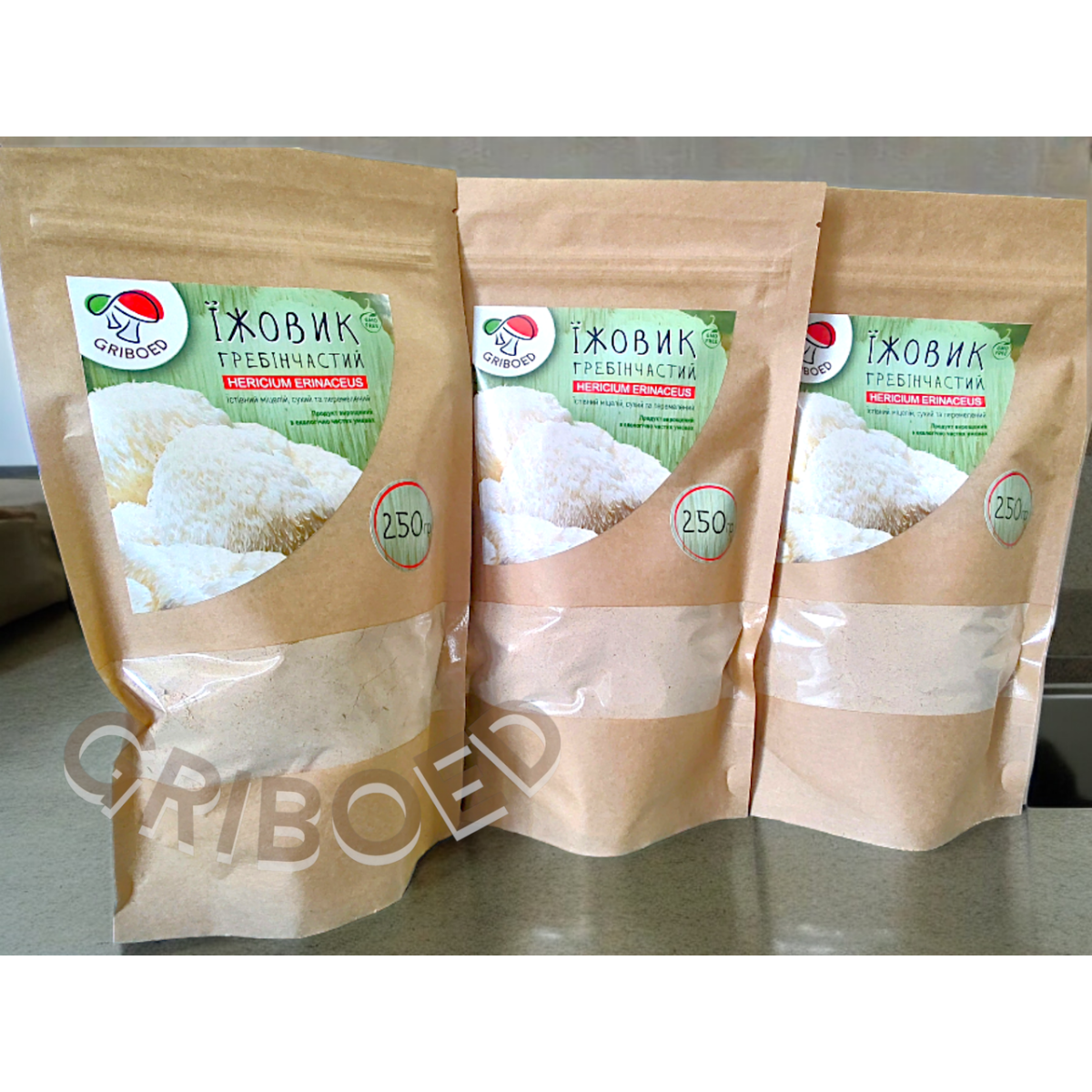 Пропонуємо Їжовик гребінчастий (їстівний міцелій) висушений і перемелений — 250 грам.
