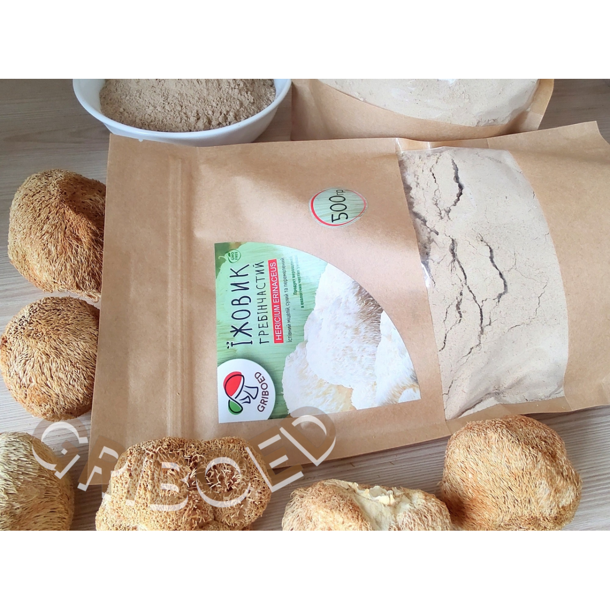 5) Їжовик гребінчастий сухий перемелений (70% міцелій + 30% плодові тіла), фасування: