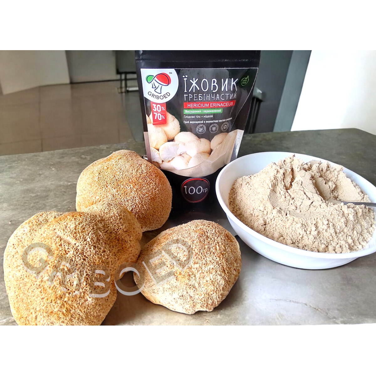 Новинка! Сухий Їжовик гребінчастий, перемелений на порошок (30% плодових тіл і 70% міцелію) - покращений ефект!
