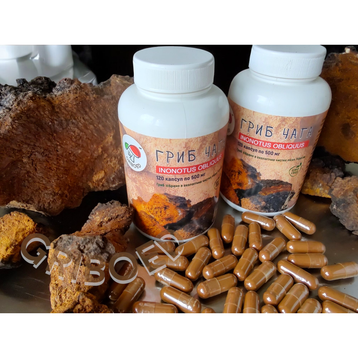 49) Чага гриб (120 капсул по 0,5 грама) 1 банка - 530 грн.