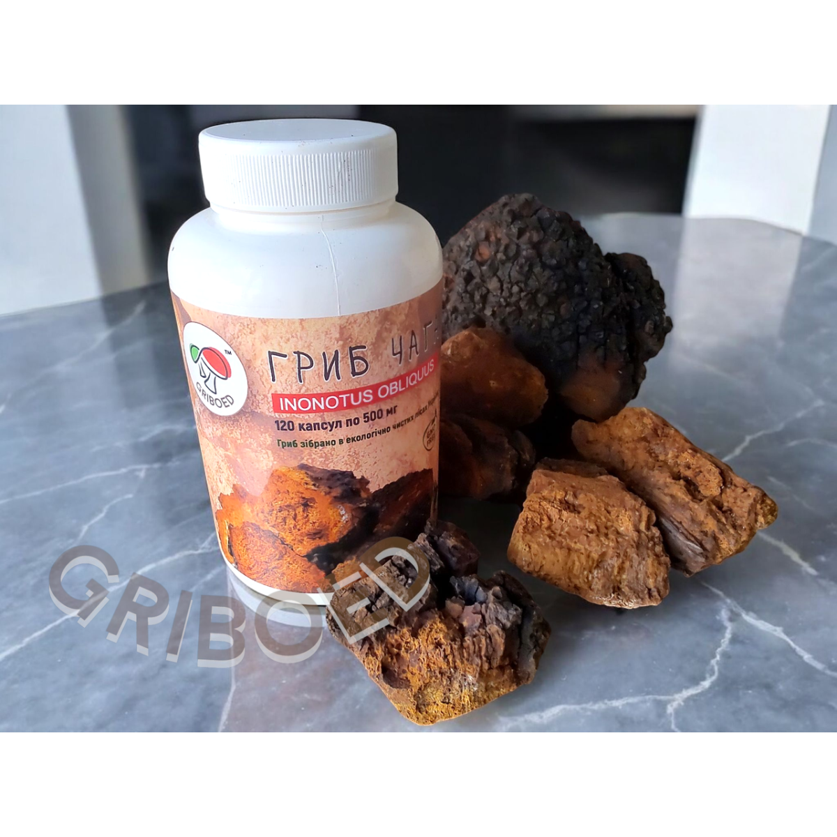 49) Чага гриб (120 капсул по 0,5 грама) 1 банка - 530 грн.
