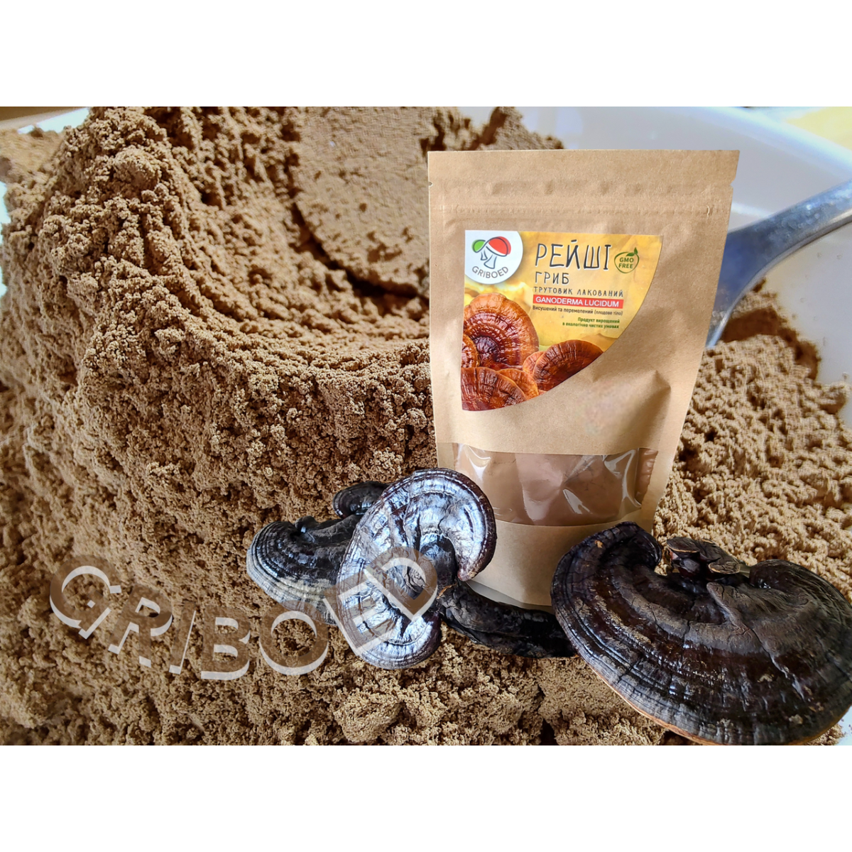 Зерноміцелій гриба Рейші для зручності вживання, висушений і перемелений на порошок.
