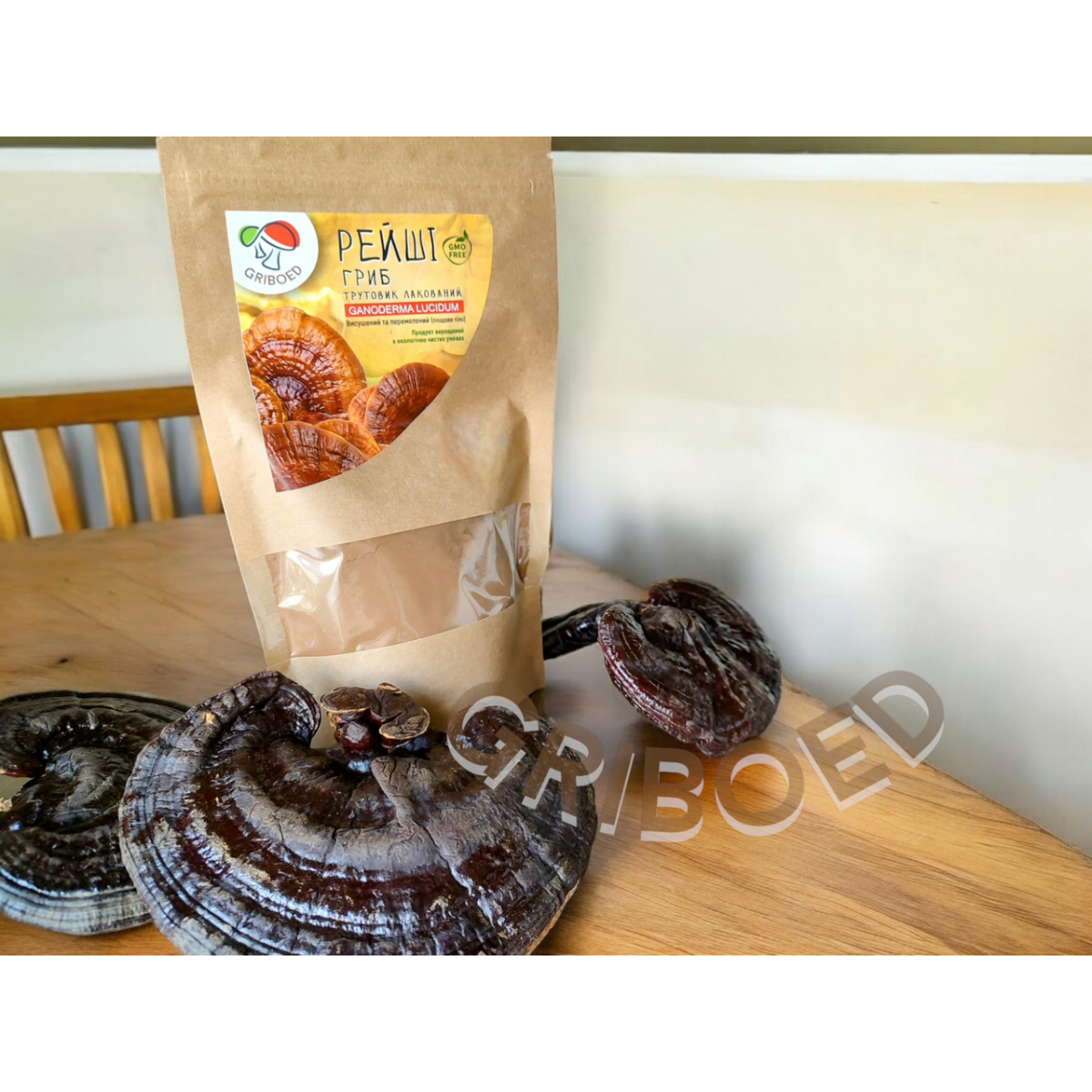 Гриб Рейші ще називають грибом безсмертя. Рейші приносить чудову користь для здоров“я, містить понад 400 біологічно активних сполук, включно з тритерпіноїдами, полісахаридами, нуклеотидами, стеролами, стероїдами, жирними кислотами та білками-пептидами, які мають цілу низку лікувальних ефектів: протипухлинним, протимікробним, антибатеросклеротичним, протизапальним, гіполіпідемічним, антидіабетним, антиоксидантним і радикалопоглинальним. Біологічно активні сполуки гриба Рейші мають ефект антистаріння, протигрибковий і противірусний (особливо проти вірусів герпесу та ВІЛ), а також ефект зміцнення імунної системи!