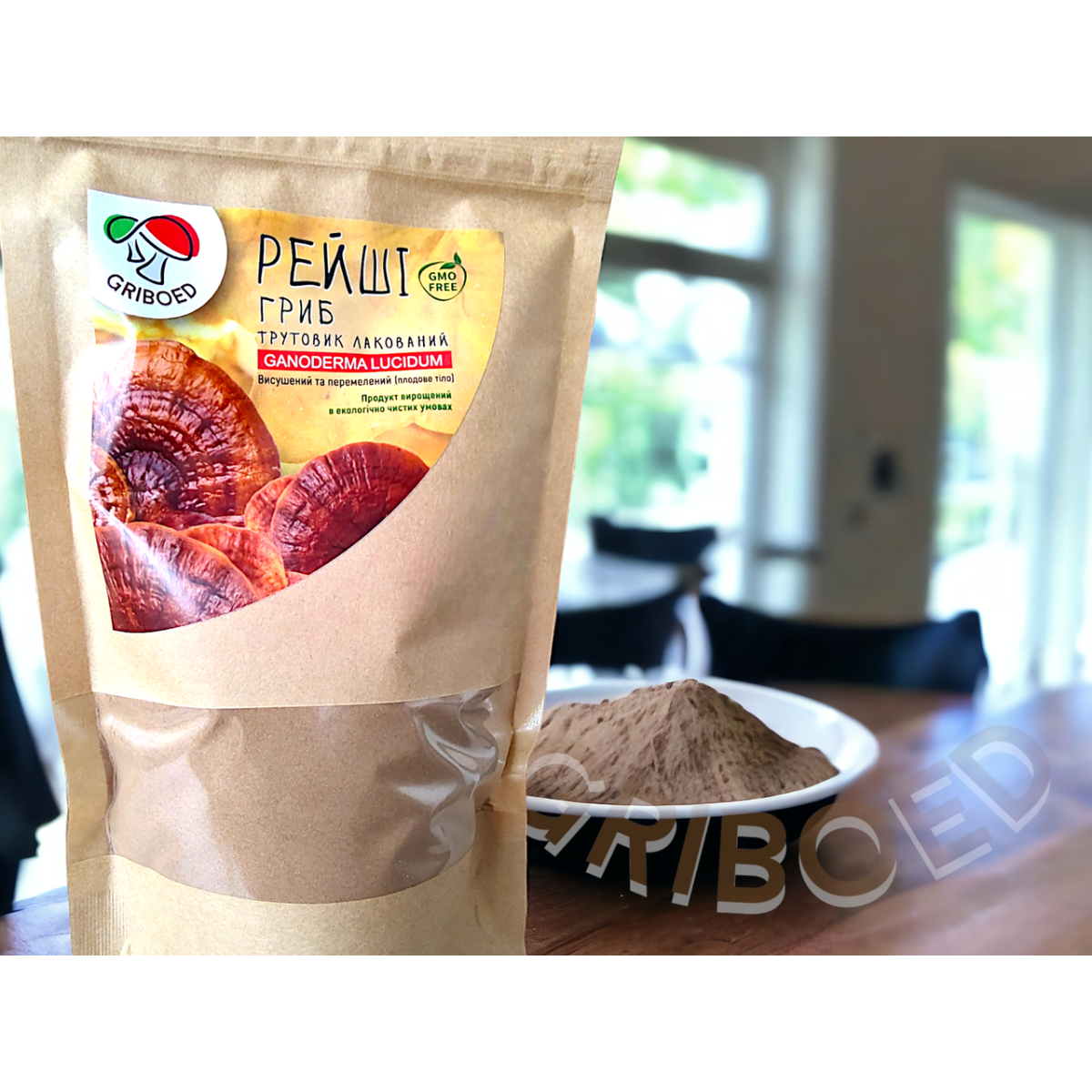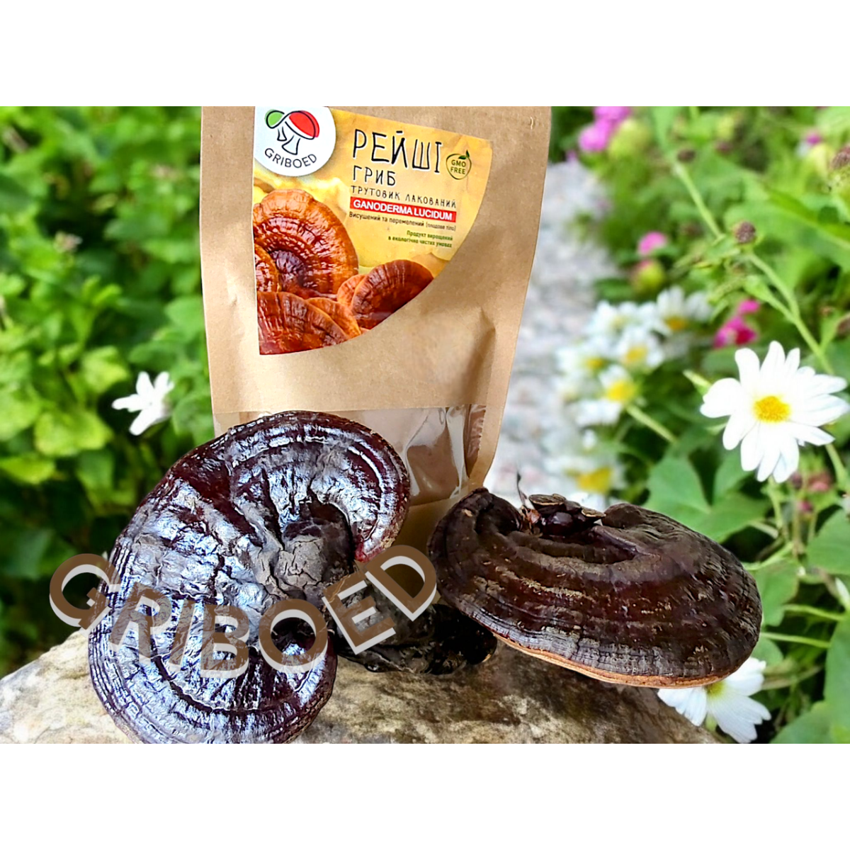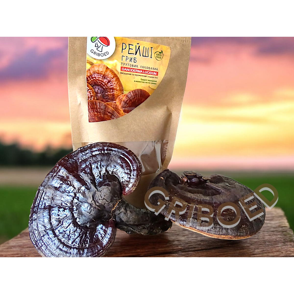 Гриб Рейші ще називають грибом безсмертя. Рейші приносить чудову користь для здоров“я, містить понад 400 біологічно активних сполук, включно з тритерпіноїдами, полісахаридами, нуклеотидами, стеролами, стероїдами, жирними кислотами та білками-пептидами, які мають цілу низку лікувальних ефектів: протипухлинним, протимікробним, антибатеросклеротичним, протизапальним, гіполіпідемічним, антидіабетним, антиоксидантним і радикалопоглинальним. Біологічно активні сполуки гриба Рейші мають ефект антистаріння, протигрибковий і противірусний (особливо проти вірусів герпесу та ВІЛ), а також ефект зміцнення імунної системи!