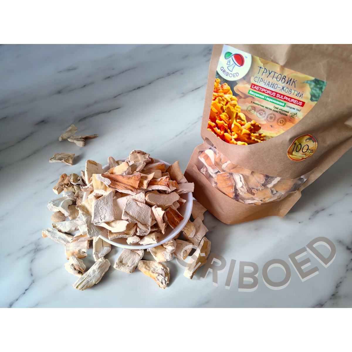 45) Трутовик Сірчано-жовтий сухий цілий (в кусочках) 100 грам - 277 грн;