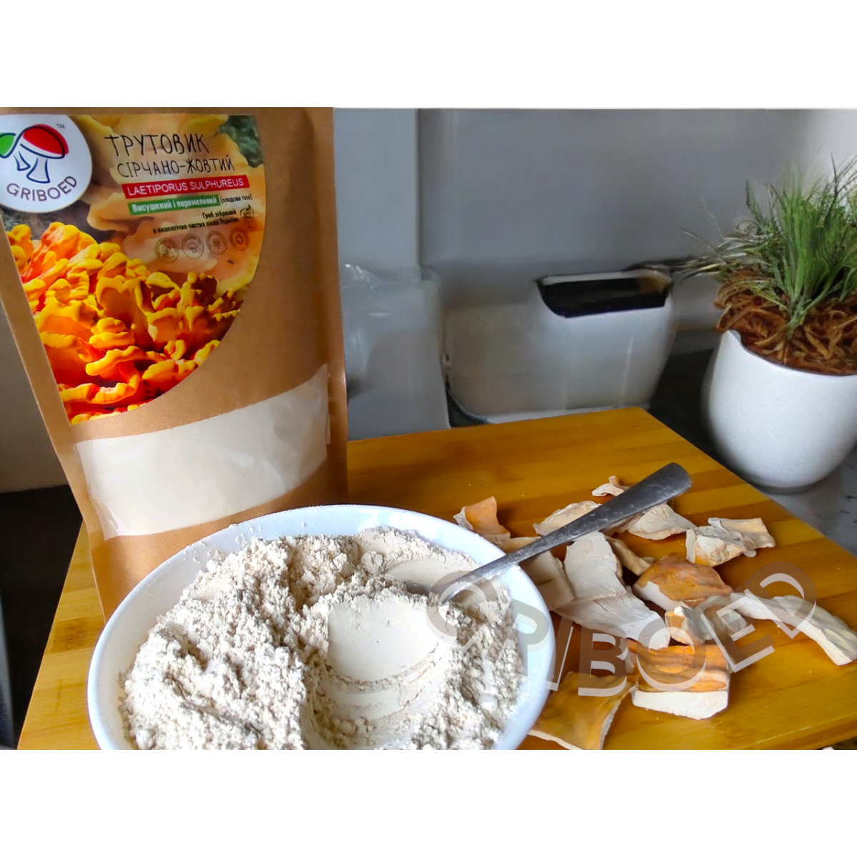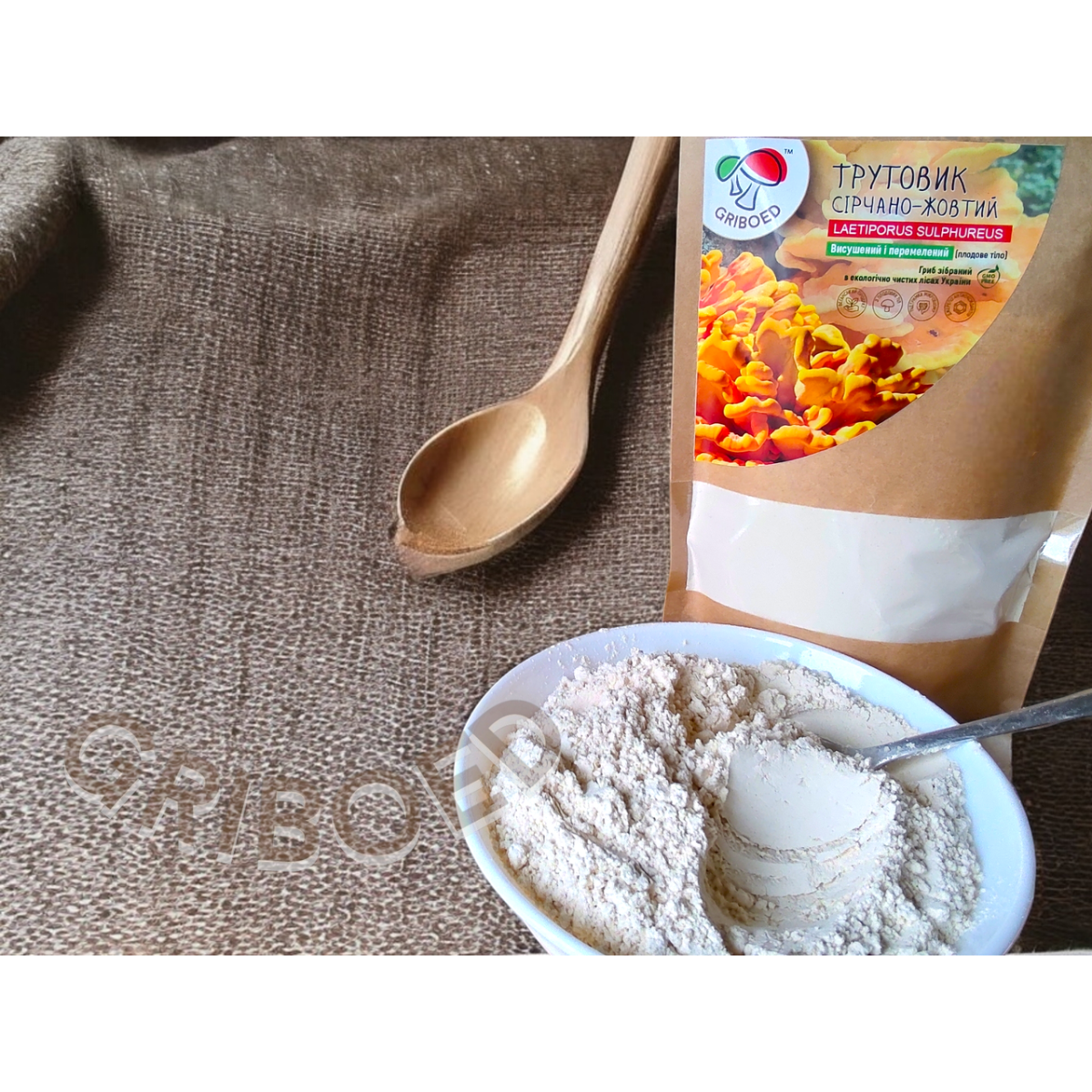 Трутовик Сірчано-жовтий, висушений і перемелений на порошок. Зібраний в екологічно чистих лісах України.