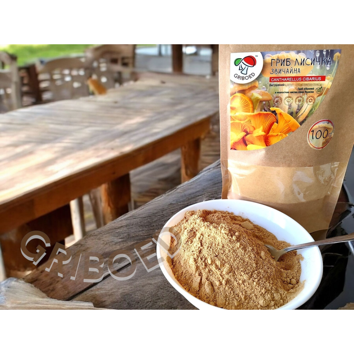 Пропонуємо гриб Лисичку справжню. Для зручності використання гриб перемелено на порошок.