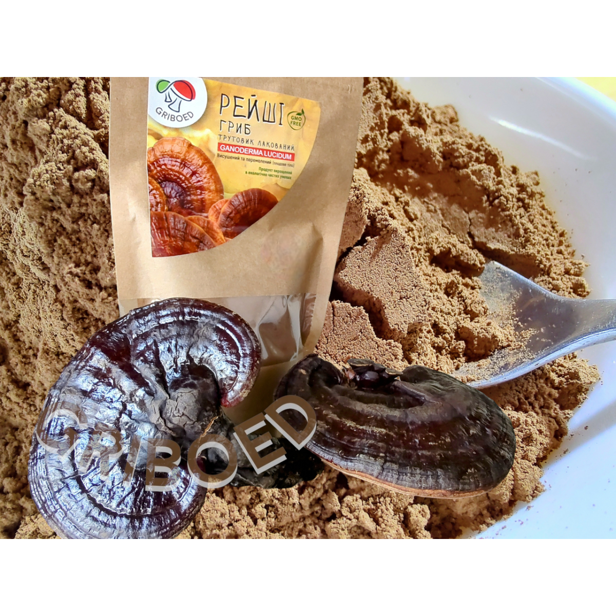 Гриб Рейші ще називають грибом безсмертя. Рейші приносить чудову користь для здоров“я, містить понад 400 біологічно активних сполук, включно з тритерпіноїдами, полісахаридами, нуклеотидами, стеролами, стероїдами, жирними кислотами та білками-пептидами, які мають цілу низку лікувальних ефектів: протипухлинним, протимікробним, антибатеросклеротичним, протизапальним, гіполіпідемічним, антидіабетним, антиоксидантним і радикалопоглинальним. Біологічно активні сполуки гриба Рейші мають ефект антистаріння, протигрибковий і противірусний (особливо проти вірусів герпесу та ВІЛ), а також ефект зміцнення імунної системи!