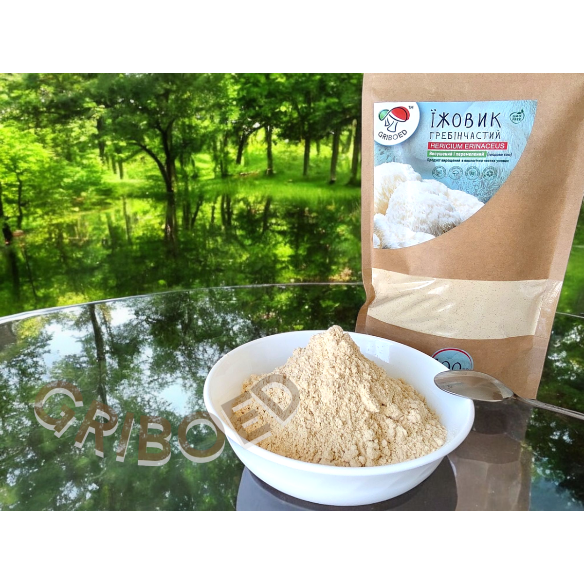 50) Їжовик гребінчастий сухий перемелений (70% міцелію + 30% плодові тіла), в банці 200 грам -