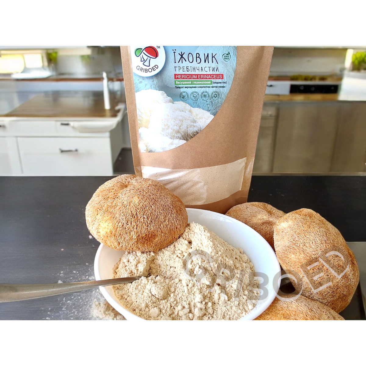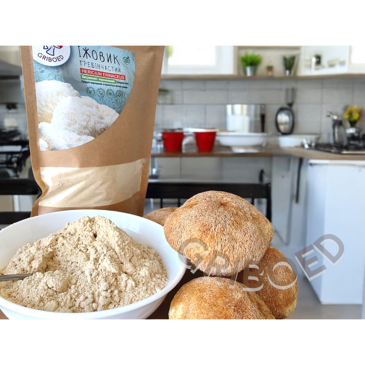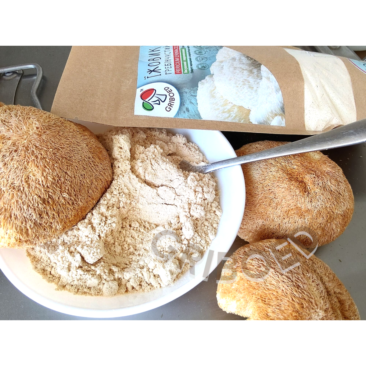 5) Їжовик гребінчастий сухий перемелений (70% міцелій + 30% плодові тіла), фасування: