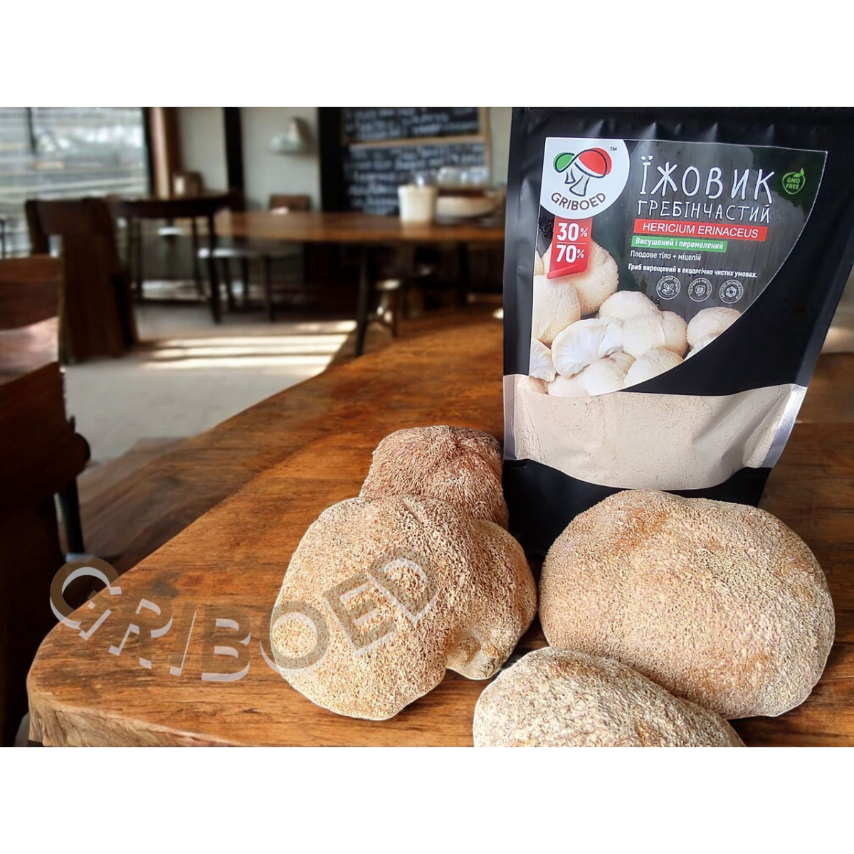 Новинка! Сухий Їжовик гребінчастий, перемелений на порошок (30% плодових тіл і 70% міцелію) - покращений ефект!