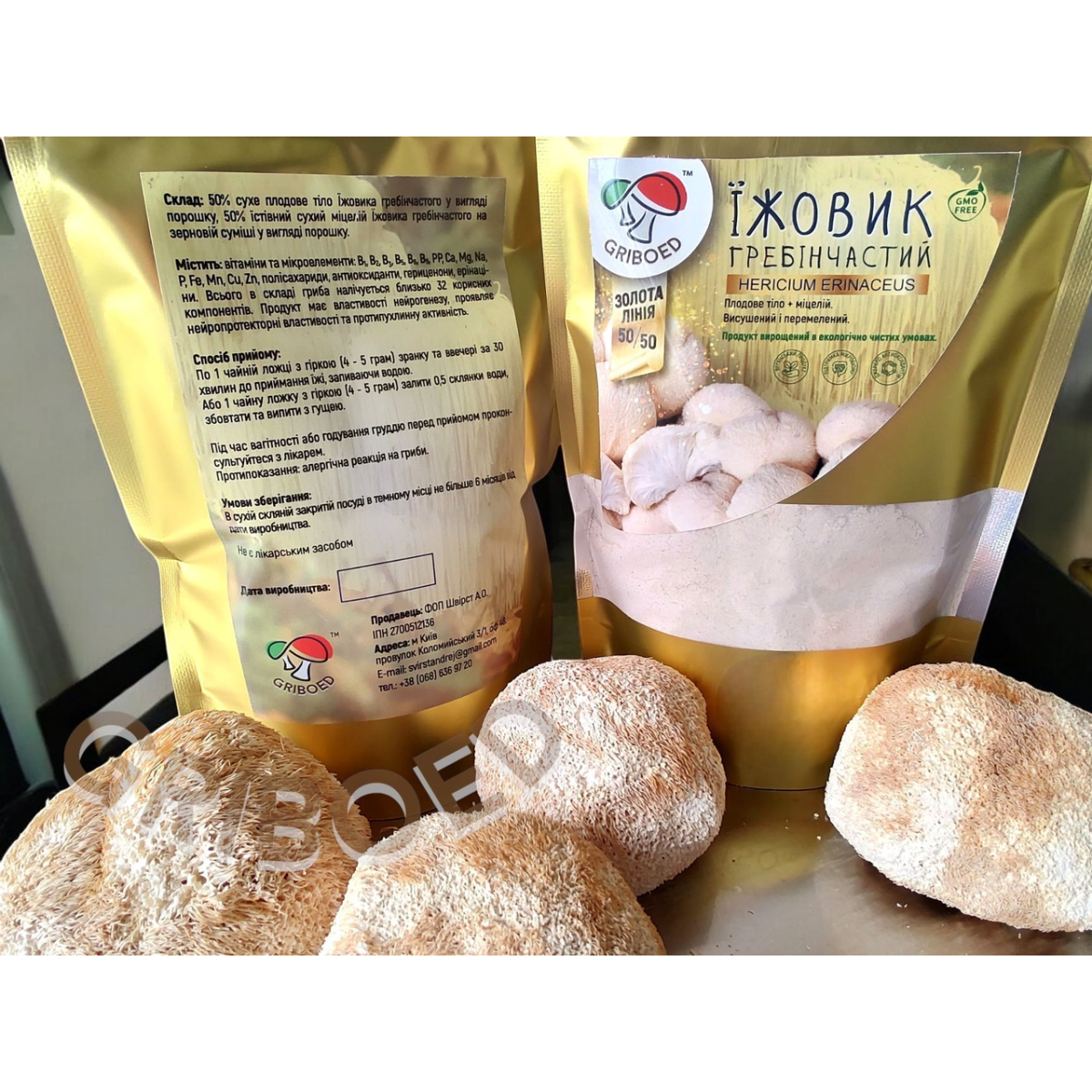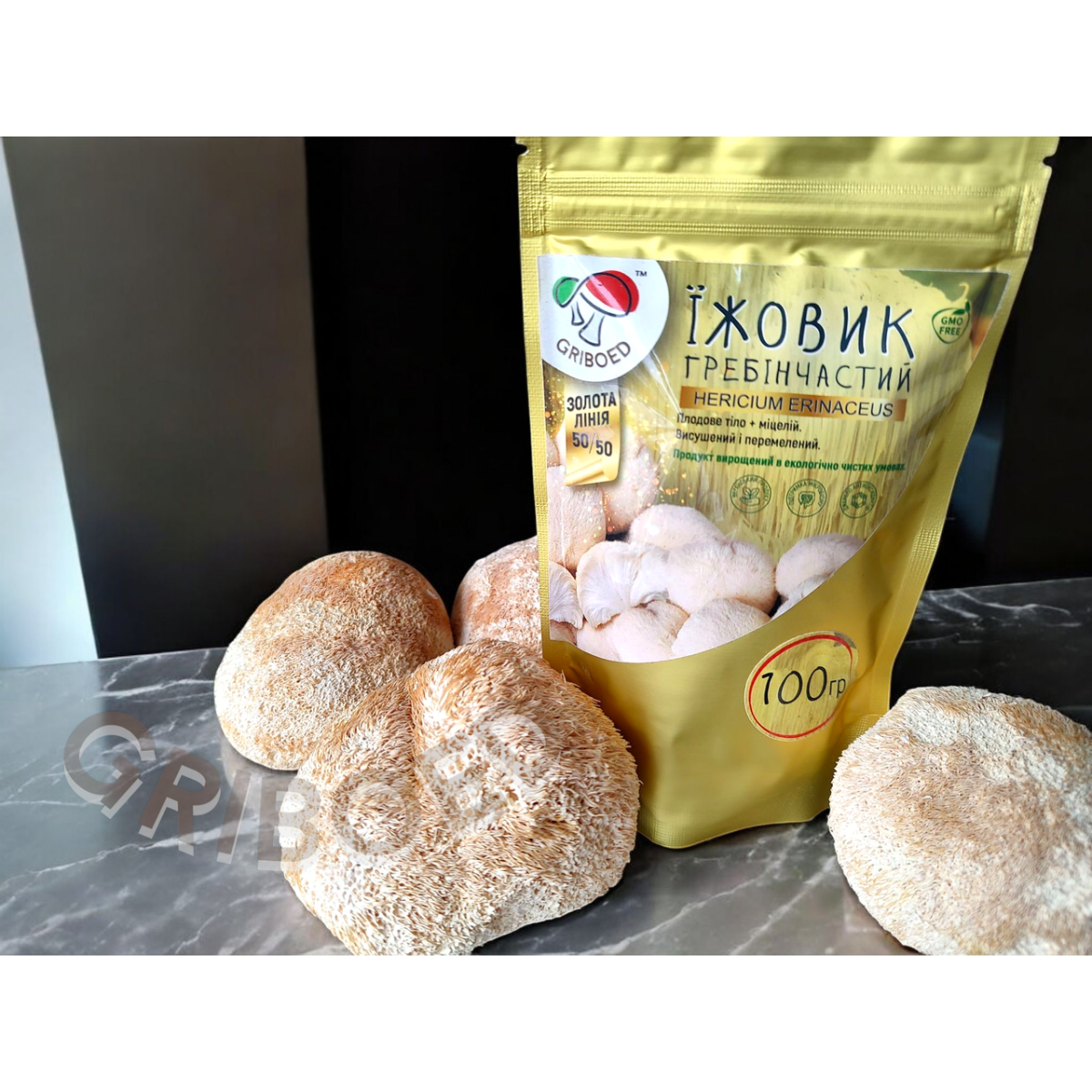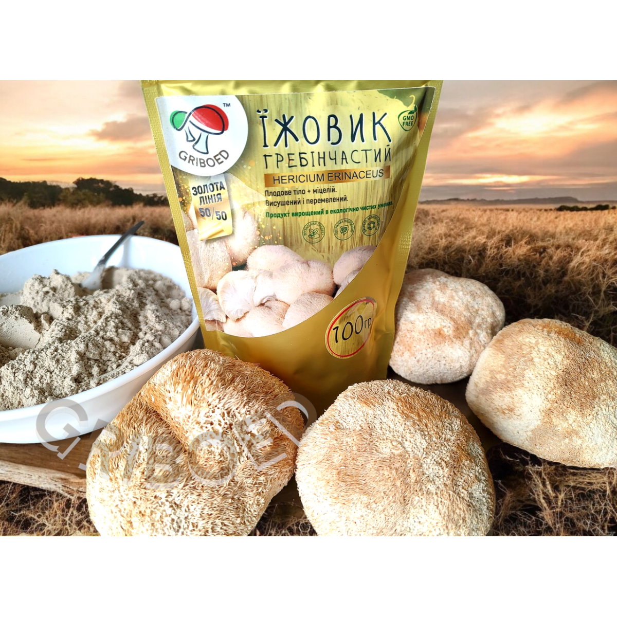 4) Їжовик гребінчастий “ЗОЛОТА ЛІНІЯ” сухий перемелений (50% плодові тіла + 50% міцелій),