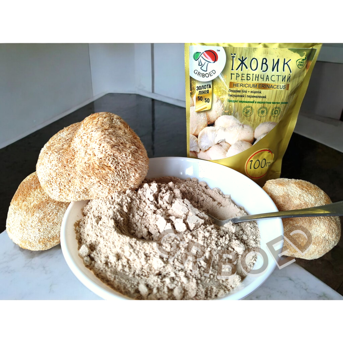 Новинка! Сухий Їжовик гребінчастий, перемелений на порошок (50% плодових тіл і 50% міцелію) - покращений ефект!