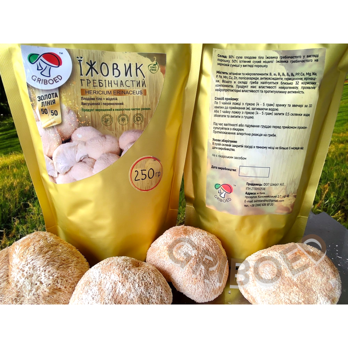 4) Їжовик гребінчастий “ЗОЛОТА ЛІНІЯ” сухий перемелений (50% плодові тіла + 50% міцелій),