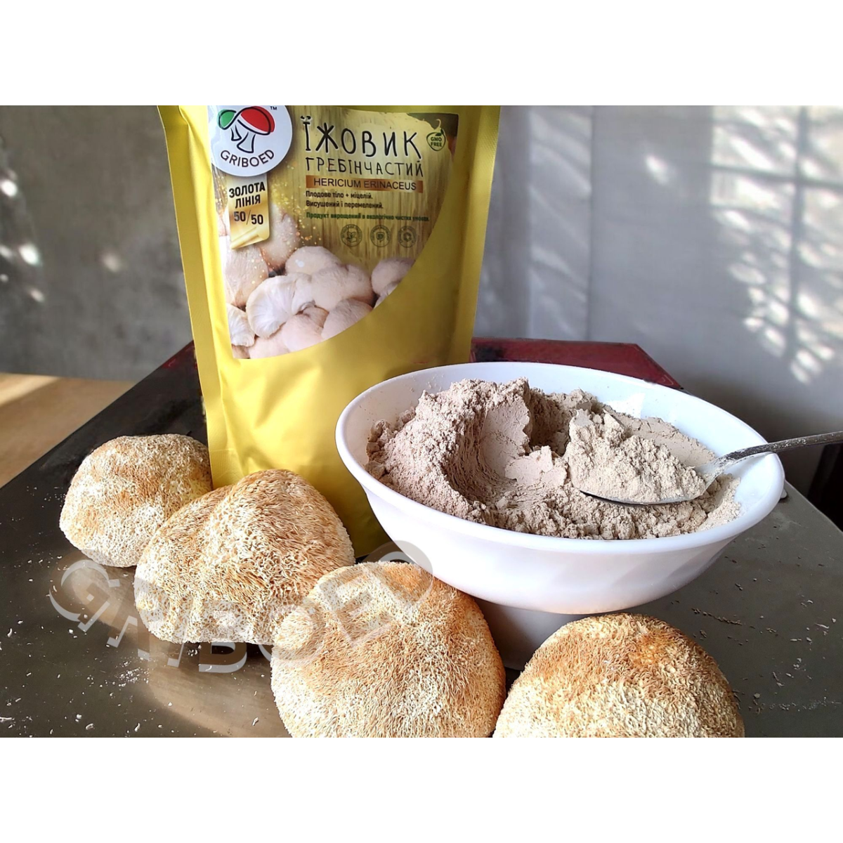 4) Їжовик гребінчастий “ЗОЛОТА ЛІНІЯ” сухий перемелений (50% плодові тіла + 50% міцелій),