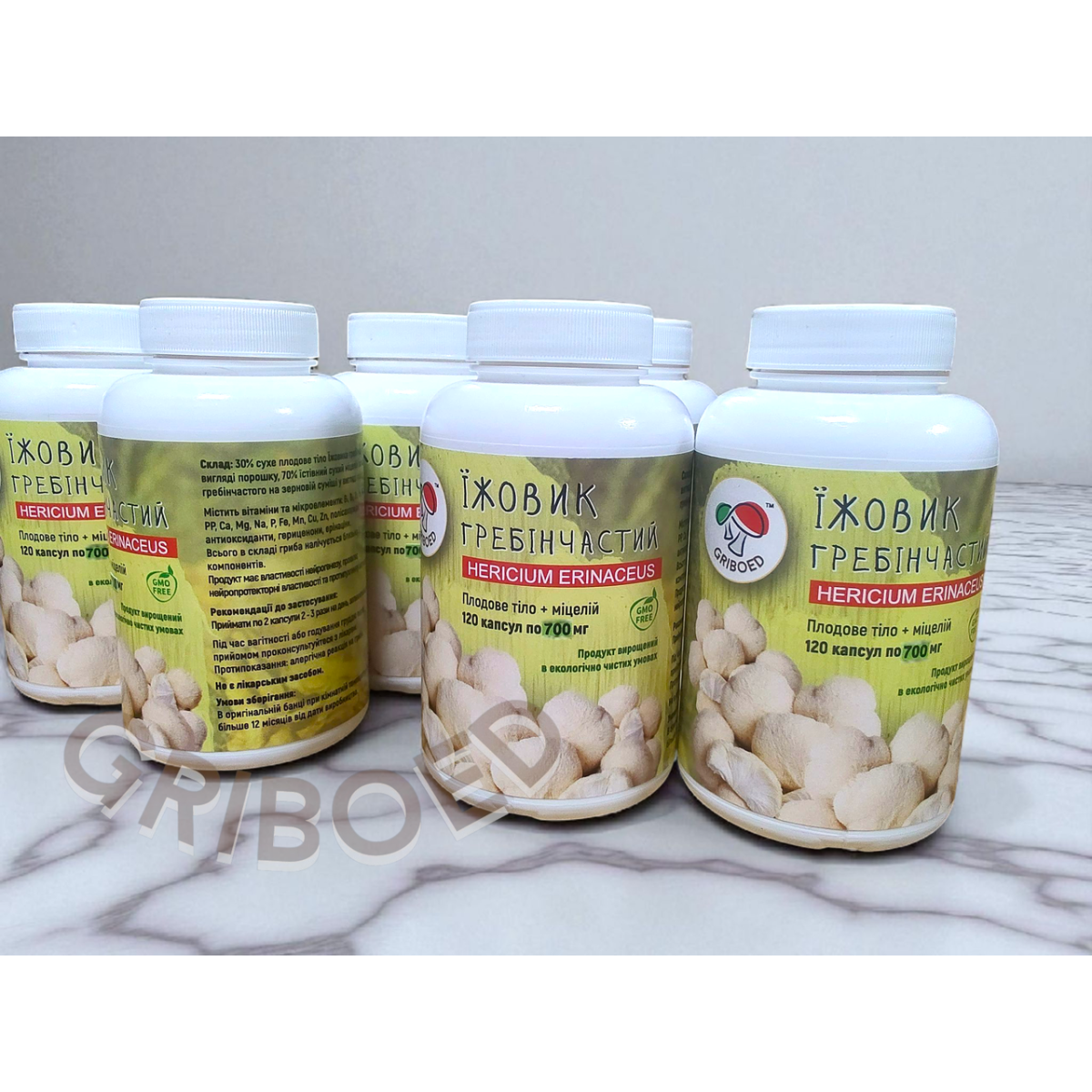 Пропонуємо ПОКРАЩЕНУ ФОРМУЛУ Їжовика гребінчастого в капсулах - поєднання плодових тіл і міцелію цього гриба дає МАКСИМАЛЬНИЙ РЕЗУЛЬТАТ!